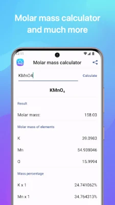 🧪 The Chemistry application allows you to find chemical reactions and to solve the chemical equations with one or multiple unknown variables. You'll always have Mendeleev's Periodic Table and Solubility table handy! And even the calculator of Molar Masses is now on your phone!