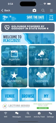 The DCAC Events mobile application allows you to access DCAC's various conferences. Within the underlying event apps, users can access presentations, exhibitors, and connect with other attendees. Users can also take notes adjacent available presentation slides and draw directly on slides inside the event apps.