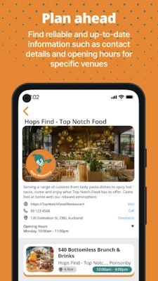 Plan your next outing with ease by using Hops for up-to-date, reliable, and accurate information on all participating venues. Hops allows venues to edit and update their opening hours, contact details, and current deals or events in real time. It's super easy! Visit a participating venue's page on Hops for all the information you need to ensure your outing is perfect.