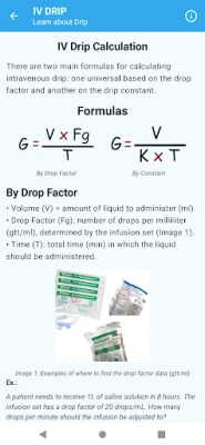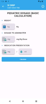 Accurate IV drip rate and pediatric dosage calculation: Enter the necessary data, and the app will instantly calculate infusion rates in drops per minute (gtt/min) or milliliters per hour (ml/h) along with precise pediatric medication doses.