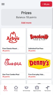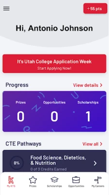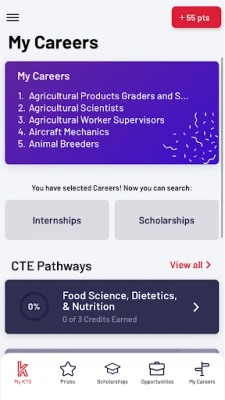 The purpose of the Keys to Success app is to help students unlock their future and connect them with scholarships, internships, and other career opportunities. As students are matched with opportunities within their identified career interests, students gain points for awesome rewards. Students can track their progress, navigate career pathways, receive push notifications, and use additional tools like College Planning Resources, ACT Prep, and FASFA Help. Additionally, Keys to Success is partnered with multiple universities, post-secondary educational institutions, and business sponsors to provide students with scholarship and career opportunities