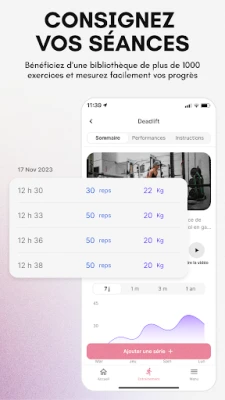 « Combien de poids ais-je mis la dernière fois ? » Aide-mémoire ou suivi détaillé, c'est comme vous voulez. Sauvegardez très rapidement vos performances et suivez leur évolution au cours du temps.