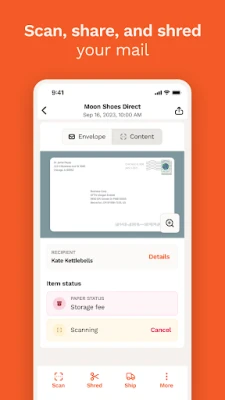 - Mail forwarding: Forward the original copies of your postal mail anywhere or share the PDF of the document with anyone. Receive push notifications when your shipment is on its way.
