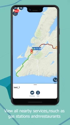 ► View nearby restaurants, gas stations, hotels, parking, and other services.