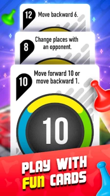 3. Starting: Players take turns drawing a card from the deck and move their pawns according to the card’s instructions. The deck includes cards that allow players to move forward, backward, or swap places with an opponent.
