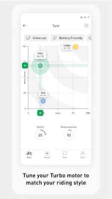 Smart Control (Turbo e-bikes only): Effortlessly manage your Turbo e-bike's battery use on any ride. Set your desired battery percentage remaining for the end of your ride, and the app will intelligently adjust motor assistance to ensure you reach your destination with the right amount of charge.