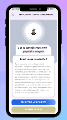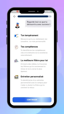 Success est une application qui aide les étudiants à découvrir leur personnalité à travers des tests de tempérament et à obtenir des recommandations personnalisées pour leur orientation scolaire.