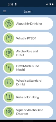 VetChange is an app designed for Veterans, Service members, and anybody who is concerned about their drinking and how it relates to stress. This app can be useful for developing healthier drinking behaviors. You can gain insight into how your drinking relates to different moods and situations, use interactive tools to manage your stress and urges to drink, learn about alcohol use and posttraumatic stress, and track your progress. The app also includes information about community resources and referrals to professional treatment.