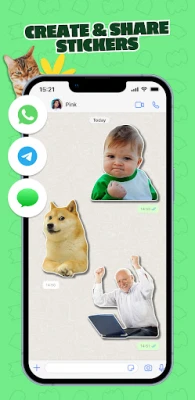 When you're ready to share your stickers, it's easy. Send them on WhatsApp, Telegram, or iMessage with a single tap or use the sticker pack code.