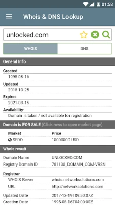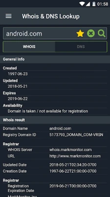 Whois & DNS Lookup tool allows you to perform WHOIS lookups for: